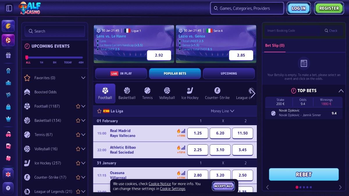 Alf Casino is a modern online gaming platform offering a broad variety of casino games, promotions, and features designed to appeal to players who enjoy a full real-money casino experience. On the official Alf Casino site, the focus is on premium games from top providers, secure banking, and an engaging bonus program that welcomes new members with generous rewards.