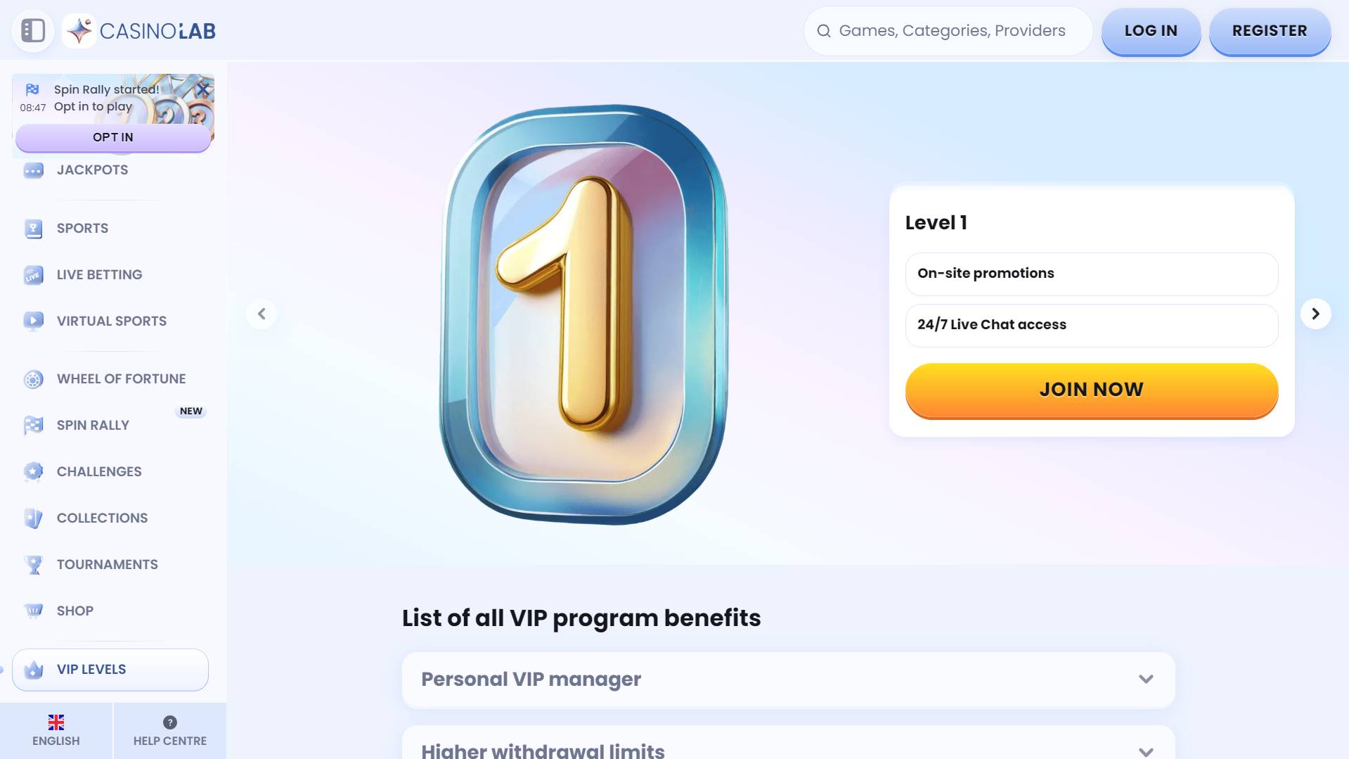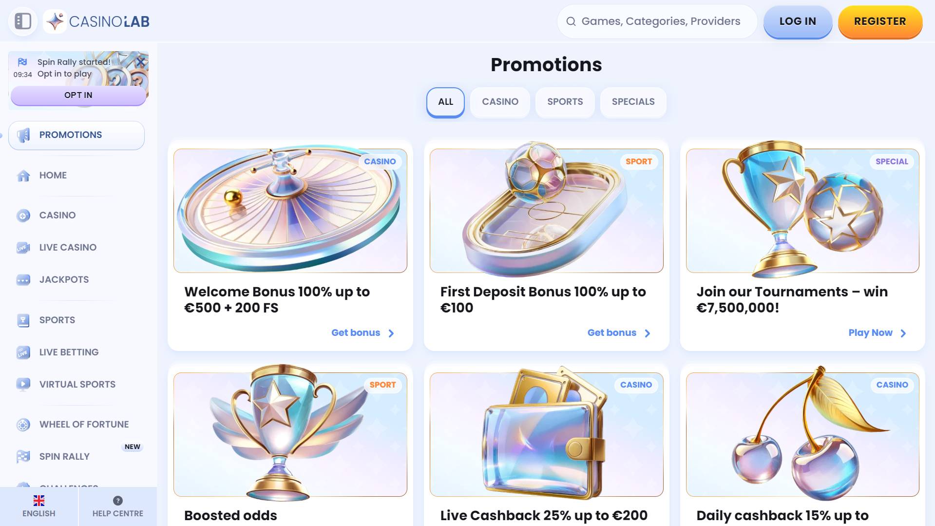 CasinoLab Casino is a modern iGaming platform launched in 2020, running on the iGate casino system and operating under an AOFA licence. It delivers a large-scale game library with 10,000+ slots, 300+ live dealer titles, plus a full sportsbook in the same account. The bonus structure is attractive at first glance, led by a 100% up to €500 + 200 Free Spins package, plus a separate first deposit bonus of 100% up to €100. Payments are flexible thanks to crypto support, and access is smooth across desktop, mobile browser, and a downloadable app. The minimum deposit and withdrawal both start at €10, support is available through live chat and email, and regular players get long-term value through a VIP program.