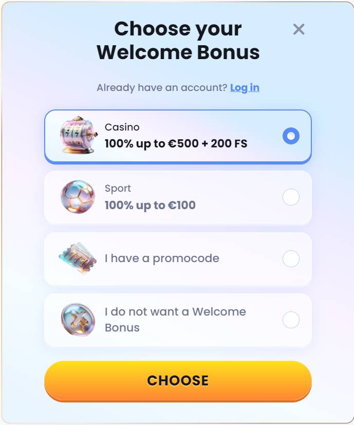 - Strong welcome package. Up to €500 bonus + 200 Free Spins.