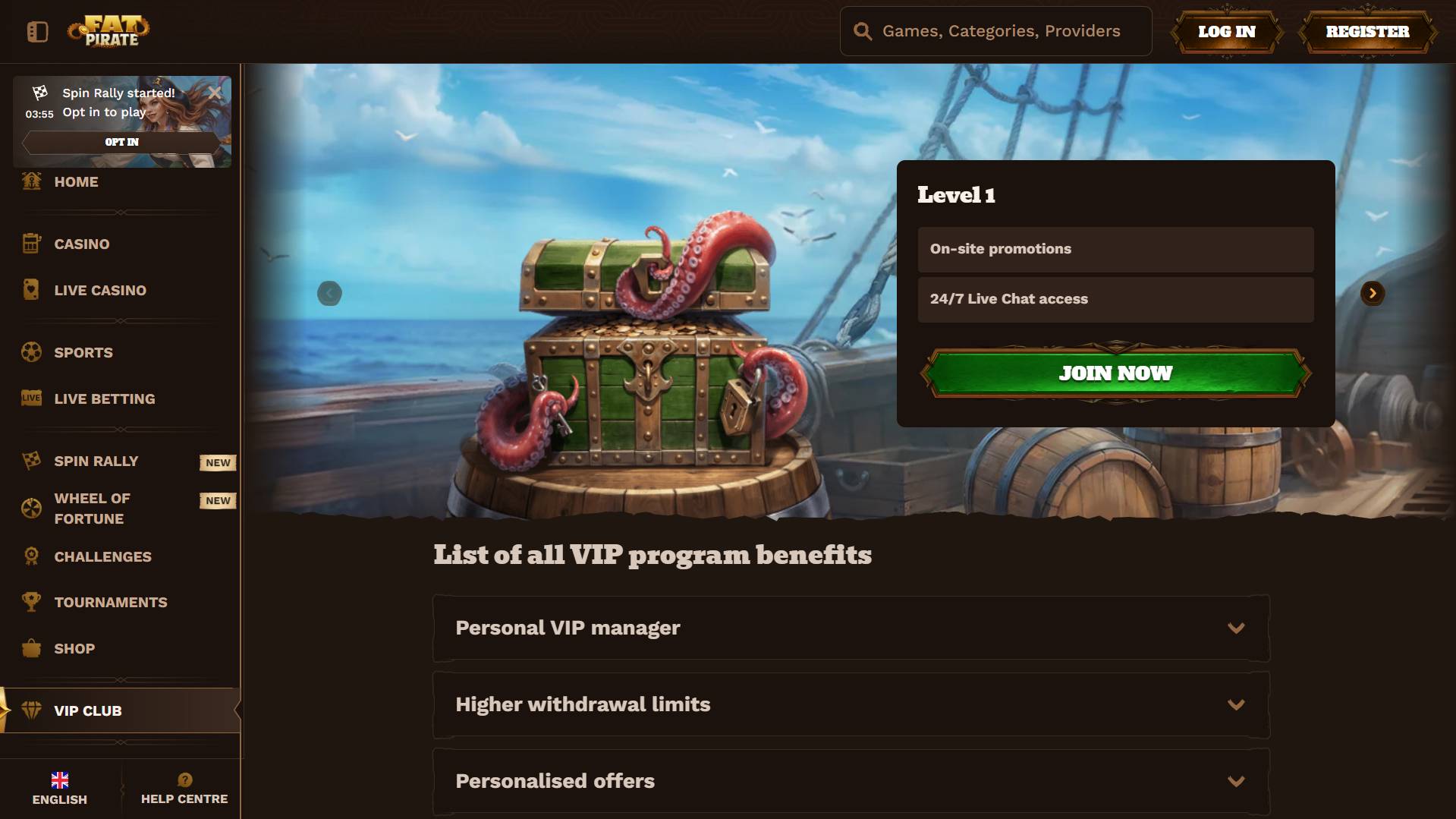 FatPirate Casino is a large-scale online casino launched in 2024 and built on the iGate platform. The site focuses on volume, variety, and accessibility, combining a massive slots library with a fully developed live casino and sportsbook. With over 10,250 slot titles, more than 1,200 live games, and support for both fiat and crypto payments, the platform is clearly positioned as a high-capacity casino rather than a niche brand.