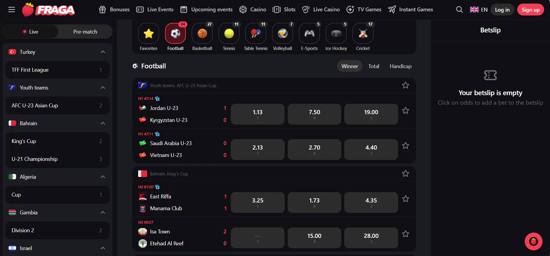 - Integrated sportsbook covering sports, live betting, and eSports on the same account.