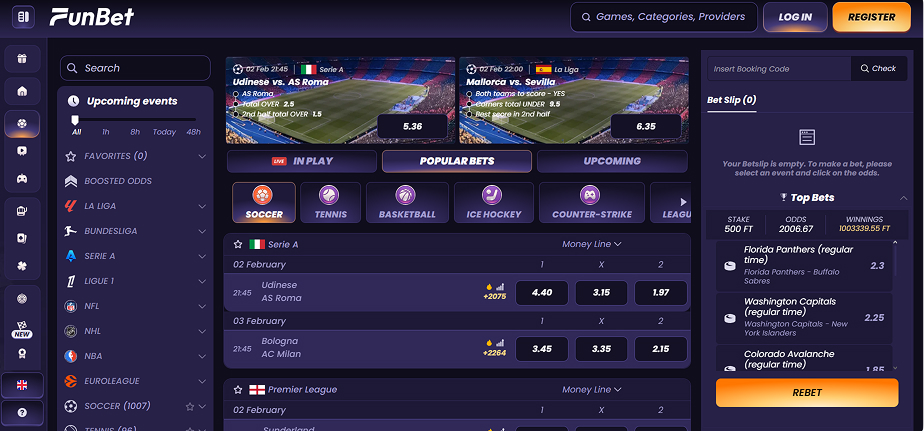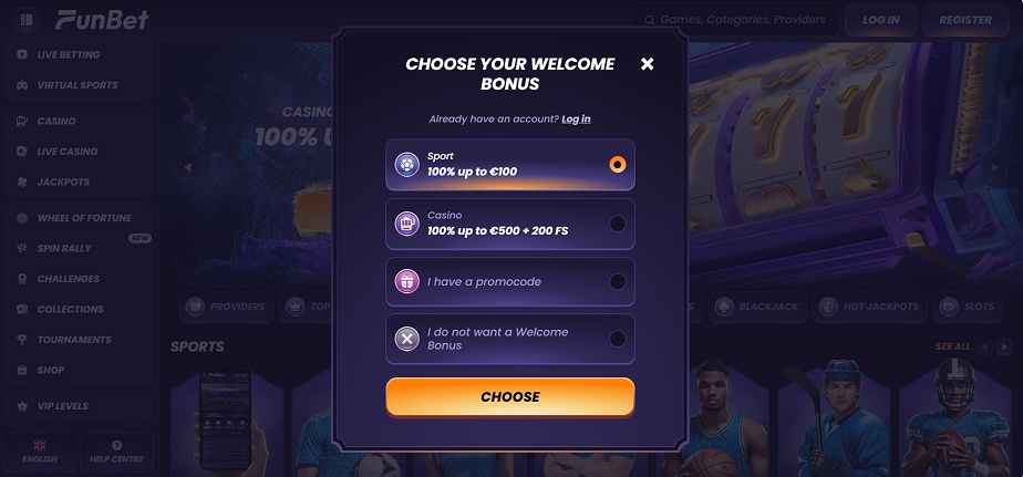 Sports betting is available at Funbet Casino in supported regions and may be accessible to Slovenian players, depending on current availability and regional restrictions.