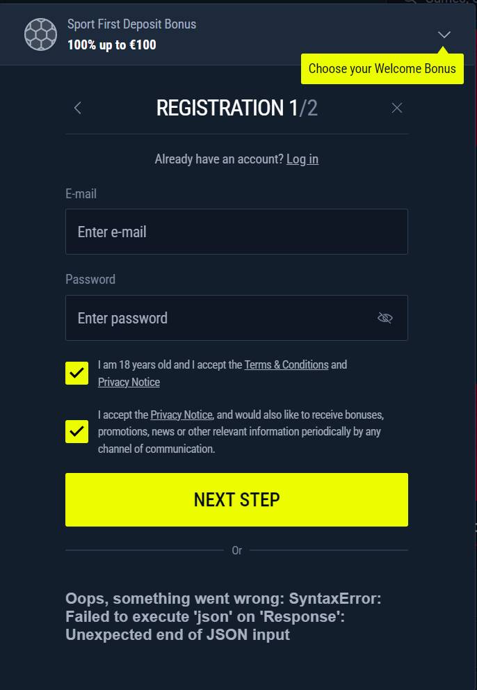 • Sports bonus available: 100% up to €100 on first deposit.