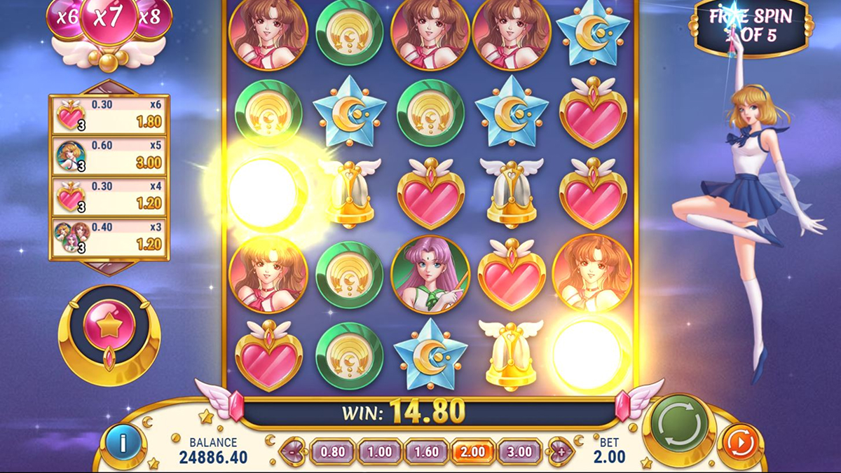 Low-Value Symbols: Stars, moons, and magical icons. Often form clusters during cascading wins